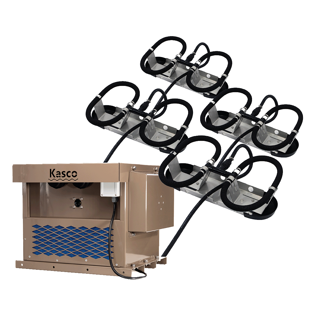 Robust-Aireā„¢ systems are quiet and provide great aeration benefits in depths 2.5m or greater. A shore-mounted compressor pushes air through self- weighted lines to a dual loop diffuser on the bottom of the pond, lake or tank. This beneficial mixing increases oxygen transfer and improves water quality to eliminate thermal and chemical stratification, expand fish habitat, and more.